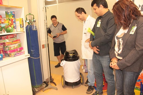 A carenagem de um antigo aspirador de pó foi reaproveitada pelos alunos da oficina de robótica, ministrada pelo Centro Social Marista do Pólo da Zona Norte de Porto Alegre (CESMAR) em convênio com o Grupo Hospitalar Conceição (GHC). O resultado, apresentado aos pacientes do HCC, foi um robô vestido com jaleco hospitalar e com a logomarca do GHC. Além disso, o novo amigo eletrônico comunica-se por meio de locução de um profissional de saúde.