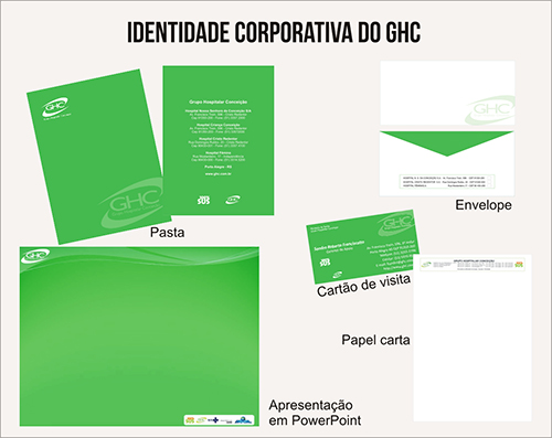 O Grupo Hospitalar Conceição tem como uma de suas ações no Planejamento Estratégico a padronização dos documentos e apresentações da instituição. Para isso, a Comunicação Social, por meio da designer Sulivam Santos e equipe, desenvolveu a arte para o cabeçalho a ser utilizado nos documentos oficiais do GHC (ofícios, memorandos, minutas, etc), o envelope para os documentos, o modelo de apresentação em PowerPoint, a pasta para os eventos e o cartão de visita.