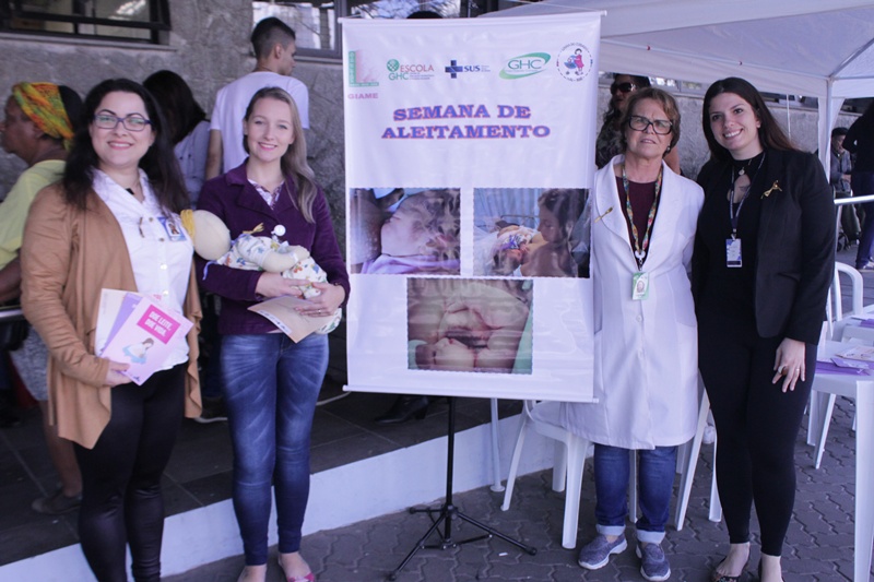 Também nesta terça-feira, 1º de agosto, em um estande, situado no pátio do Hospital Conceição, as residentes do Programa de Atenção Materno-Infantil e Obstetrícia da Residência Multiprofissional em Saúde do Grupo Hospitalar Conceição (GHC) Bruna Gomes da Silva, Caroline Santini Rauber e Mariane Echer, acompanhadas da enfermeira Maria Lourdes, realizaram a entrega de panfletos, abordagem ao público e consultoria de amamentação. Na ocasião, também foram respondidas dúvidas sobre a posição do bebê durante o ato de amamentar, fisiologia da mama, tipos de leite e outras. Nesta quarta-feira, 2 de agosto, o estande estará aberto aos profissionais e usuários do Hospital Fêmina.