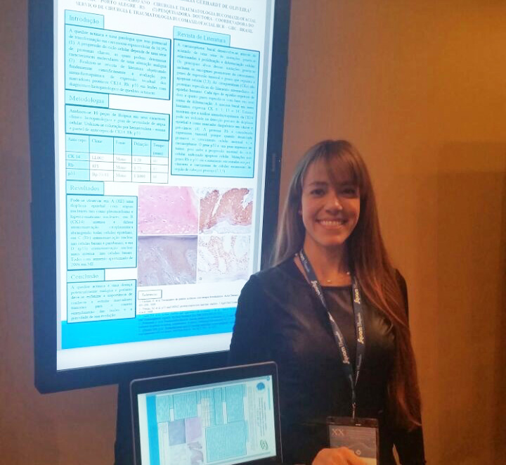 Elise Capelletti apresentou a pesquisa sobre “Quielite Actínica: Imunohistoquímica da Expressão Tecidual de Marcadores Protéicos CK14, RB, P53” e Ângela Bitarello, “Percepções, Expectativas e Manifestações de Pacientes Submetidos à Cirurgia Ortognática”.