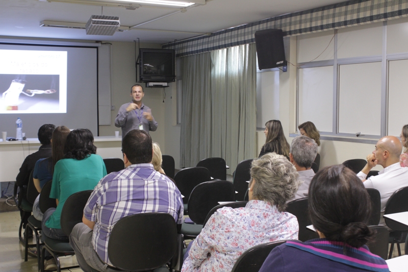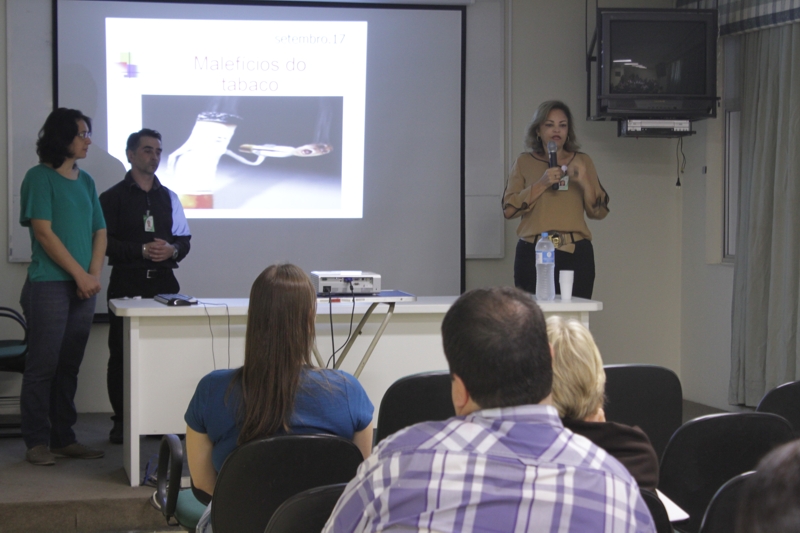 Após, o supervisor administrativo do Hospital Conceição Jeferson Luiz Alves Gomes, que também compõe a Comissão de Controle do Tabagismo do GHC, iniciou a primeira palestra da Sipat. Gomes falou sobre doenças relacionadas ao fumo, composição do cigarro, razões para parar de fumar e seus ganhos.