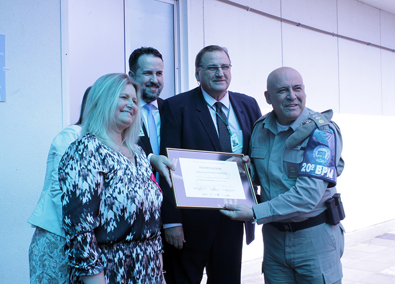 Também presente na comemoração, o Major Glademir Otero, representando o 20º Batalhão da Polícia Militar, recebeu uma homenagem em forma de agradecimento pela parceria e serviços prestados à UPA Moacyr Scliar nesses últimos anos. "As pessoas não sabem o valor da saúde e da segurança, somente quando precisam, por isso, amamos o que fazemos e estamos gratos pela confiança do GHC", disse Otero.