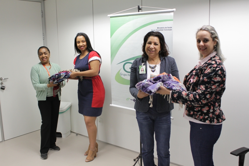 Na manhã desta segunda-feira, 6 de novembro, foram entregues cerca de 25 lenços para pacientes com câncer de mama do Hospital Fêmina. As doações foram concebidas por funcionários do escritório de advocacia Nelson Wilians & Advogados Associados e entregues para Rosangela Vianna Bellos, coordenadora da Participação Cidadã, no Centro Administrativo GHC.