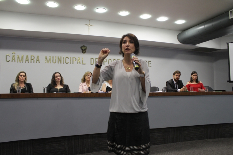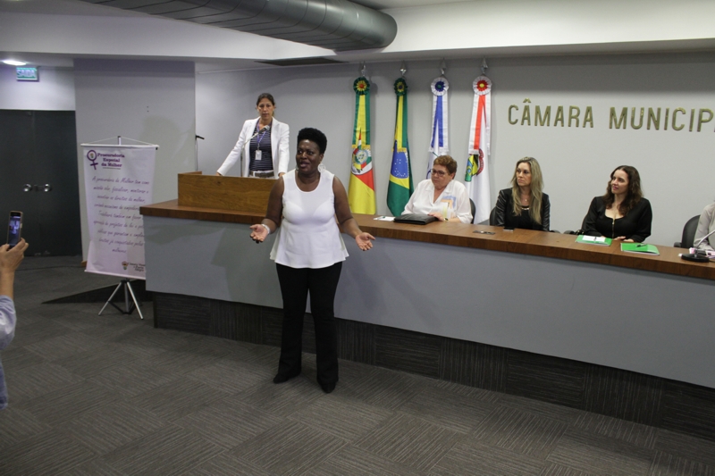 Na segunda mesa, a vereadora Comandante Nádia, apresentou um relato da Lei Maria da Penha. No ano de 2012, como tenente coronel do 19º BPM com atuação na Zona Leste de Porto Alegre, a Comandante implementou e coordenou a Patrulha Maria da Penha no Rio Grande do Sul, projeto pioneiro em âmbito nacional, que atende as mulheres com medida protetiva de urgência contra os agressores.
