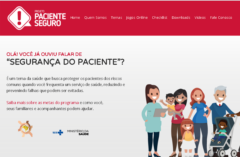 Uma das estratégias do projeto é a educação de pacientes, familiares e acompanhantes, por isso, o site conta com conteúdo básico sobre temas de segurança do paciente para que os usuários do sistema de saúde possam se instrumentalizar para auxiliar na sua própria segurança: