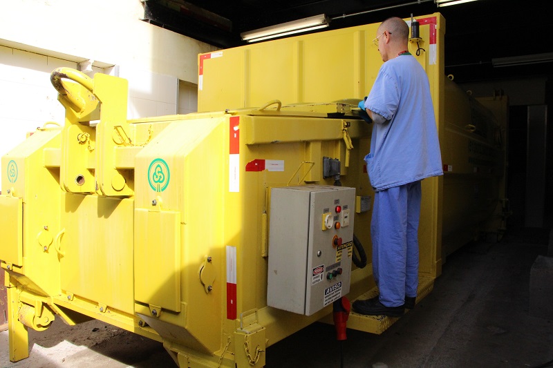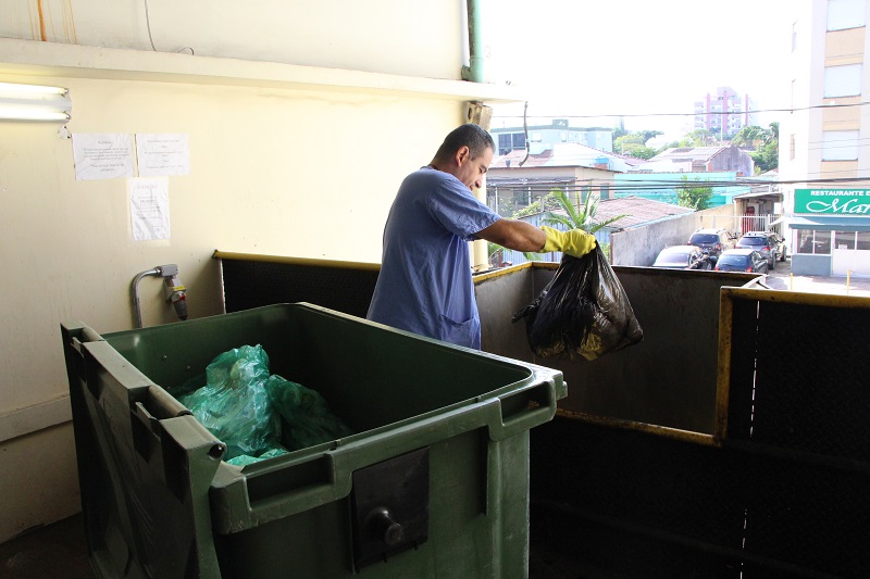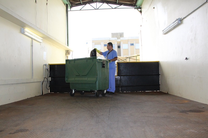 Dentre as melhorias, é importante salientar também a aquisição da nova compactadora de resíduos. Esta compactadora atende ao que estabelece a Norma Regulamentadora Nº 12 – Segurança no Trabalho em Máquinas e Equipamentos, da Portaria nº 3.214/78, trazendo benefícios aos empregados e ao processo de trabalho, pois possui trava de segurança e facilita a dispensa do grande volume de resíduos. Para facilitar essa dispensa, foi construída uma plataforma de metal que encaixa na compactadora. “Agora, além do tempo ser otimizado e ser mais fácil fazer a dispensa, está muito mais seguro. Tudo melhorou”, conta o funcionário do Setor de Higienização Saimon Cesar.