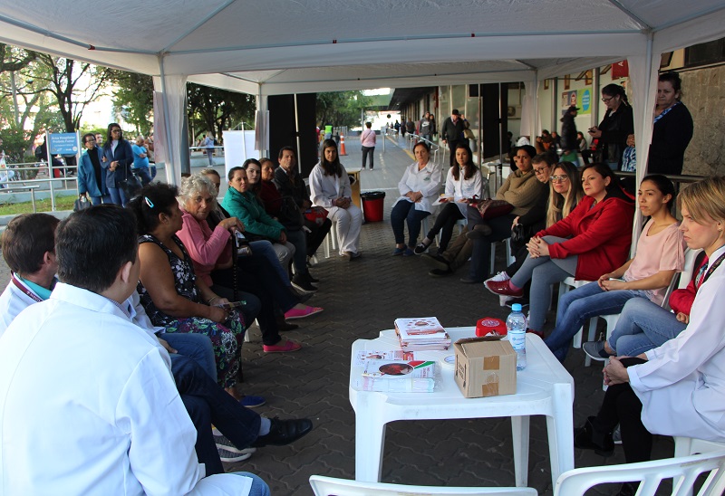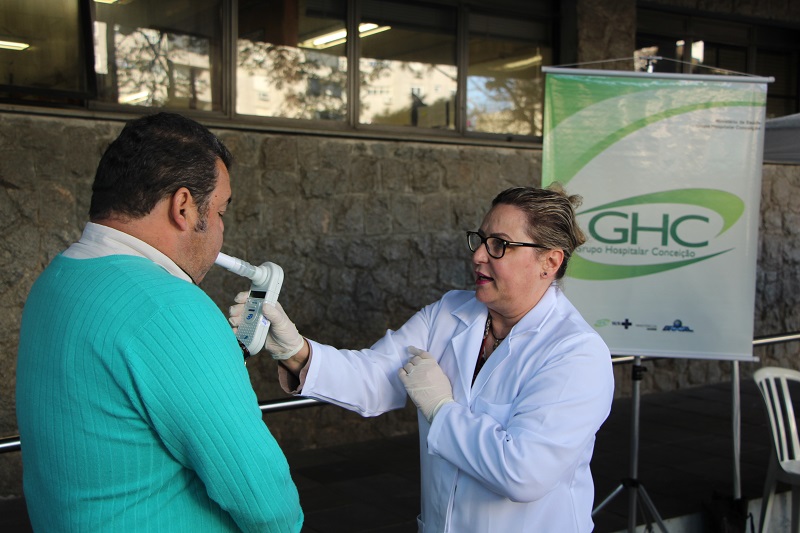 A “Semana de Prevenção do Câncer de Boca do Grupo Hospitalar Conceição (GHC)” ocorreu nos dias 29 e 30 de maio, em frente ao Ambulatório do Hospital Conceição (HNSC). No primeiro dia de atividades, o evento proporcionou aos usuários do hospital rodas de conversa com informações sobre prevenção, diagnóstico e tratamento do câncer de boca, além de fornecer o teste que mede a quantidade de monóxido de carbono (CO) no pulmão, devido ao tabaco, uma das principais causas da doença. Já no segundo dia de atividades, o público pôde realizar exames de lesões orais em estande montado frente ao hospital.