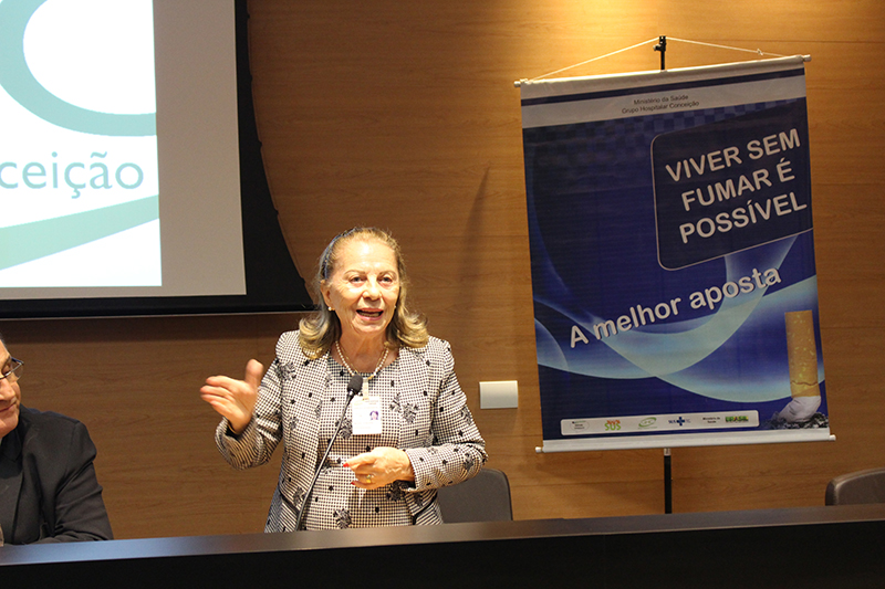 A diretora-superintendente Adriana Denise Acker destacou a importância do tema. “A partir da nossa missão de uma entidade pública de saúde, nada melhor que atuarmos na conscientização dos nossos funcionários e levarmos isso às nossas residências, sobre os malefícios do fumo”. O diretor técnico Mauro Sparta cumprimentou a presidente da CCT/GHC pelo empenho com a causa antitabaco na instituição. O diretor administrativo e financeiro José Ricardo Agliardi Silveira ressaltou a importância do evento, aonde o GHC é mais uma voz ativa inserida na sociedade gaúcha. Destacou que o tema é de valor para a diretoria de tal forma que, de imediato, atendeu demanda da comissão e, atualmente, na integração de novos funcionários do GHC está incluída a pauta do tabagismo. A presidente da CCT/GHC, Marcelina Rizzotto Bauerfeldt, em sua fala inicial, fez uma abordagem histórica sobre o Dia Mundial Sem Tabaco e destacou a colaboração da diretoria na causa com o estabelecimento da portaria 838/16, que proíbe o uso do fumo na área hospitalar da instituição.