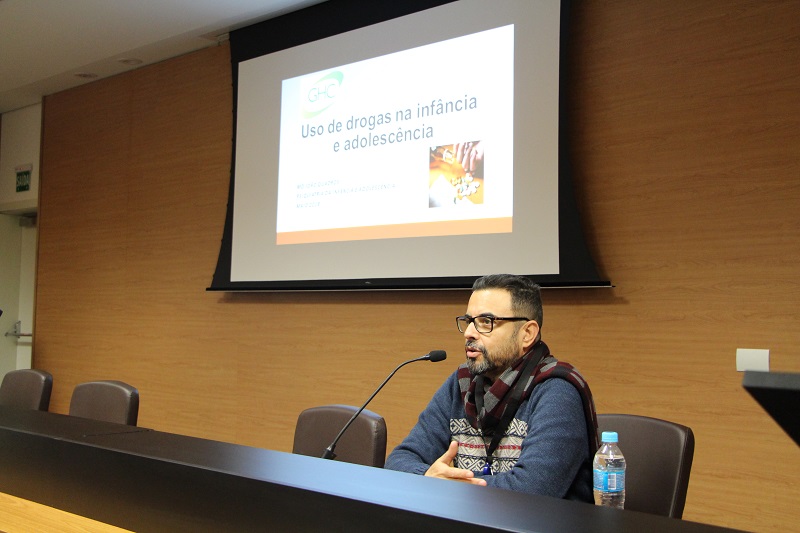 Na tarde desta quinta-feira, 14 de junho, estudantes que participam do Programa Jovem Aprendiz do Grupo Hospitalar Conceição (GHC) receberam orientações importantes a respeito do consumo de álcool e drogas na adolescência. Para falar sobre o assunto no encontro, que foi organizado pelo Centro de Resultados Participação Cidadã do GHC, foi convidado o médico João Quadros, especialista em pediatria, hebiatria e psiquiatria.