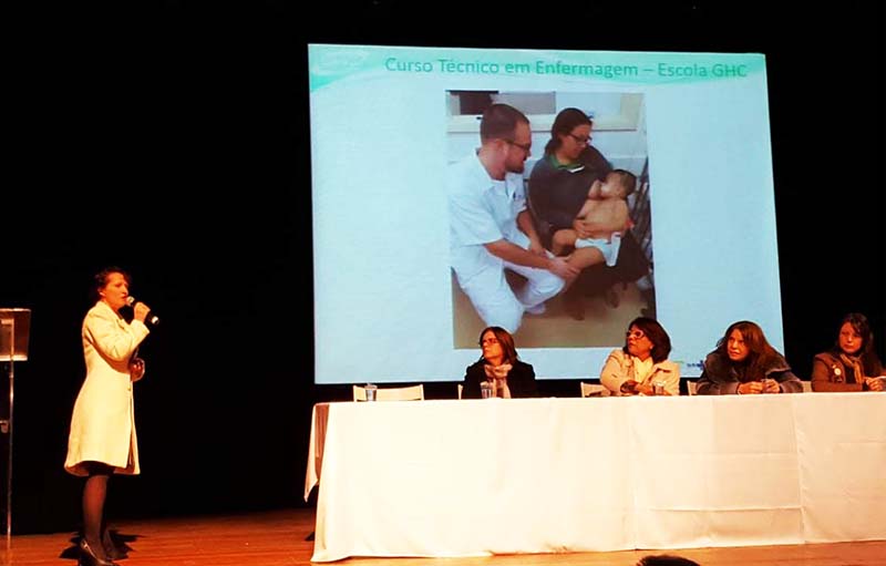 Na oportunidade, Dinara Dornfeld, enfermeira Coordenadora do Grupo de Incentivo ao Aleitamento Materno Exclusivo dos Hospitais Conceição e Criança Conceição e do Serviço de Saúde Comunitária e docente da Escola GHC, participou da mesa-redonda “Importância do Ensino Teórico e Prático sobre a Amamentação: Como a Temática vem sendo Trabalhada na Formação Profissional”. Dinara apresentou como a temática da amamentação vem sendo abordada com os discentes do Curso Técnico em Enfermagem da Escola GHC.