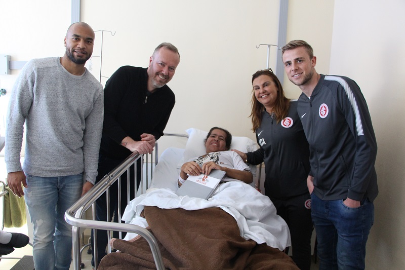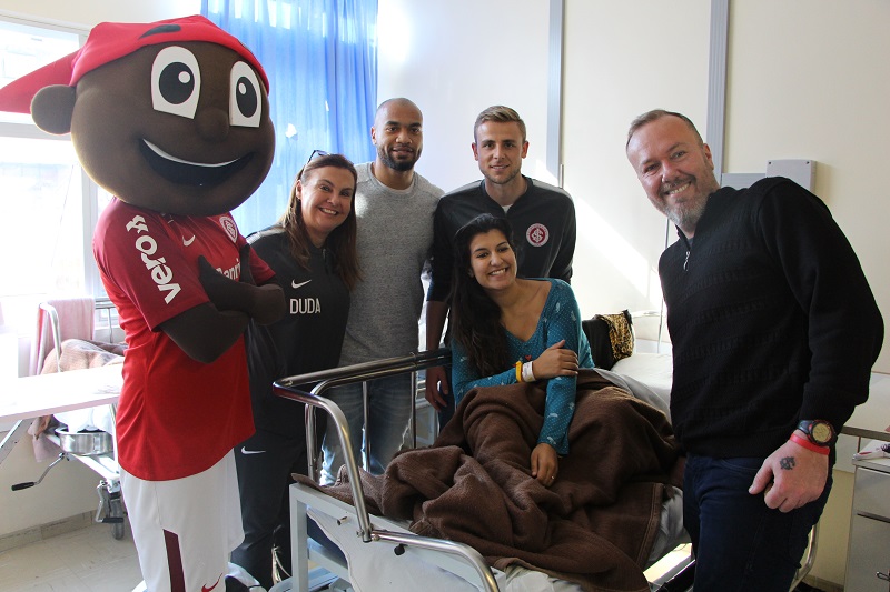 Por meio da Diretoria Feminina Colorada, que é ligada ao Departamento de Relacionamento do Sport Club Internacional, representantes do clube fizeram uma visita pra lá de especial para as pacientes oncológicas do Hospital Fêmina (HF), na tarde dessa quinta-feira, 16 de agosto. O Internacional esteve representado pelos jogadores Rodrigo Moledo e Klaus, a gerente de Futebol Feminino Duda Luizelli, o jornalista Fabiano Baldasso e o mascote do clube, Saci.