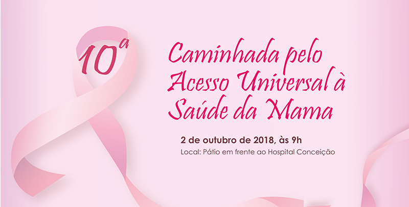 Em celebração ao Outubro Rosa, os serviços de Onco-Hematologia e de Mastologia do Hospital Conceição e as voluntárias do Grupo da Mama Conceição promovem no dia 2 de outubro a 10ª Caminhada pelo Acesso Universal à Saúde da Mama. O evento reúne funcionários, usuários, voluntários e comunidade em geral em prol da saúde mamária, alertando para a importância do diagnóstico precoce do câncer de mama e, em especial nesta edição, para a importância do acesso universal.