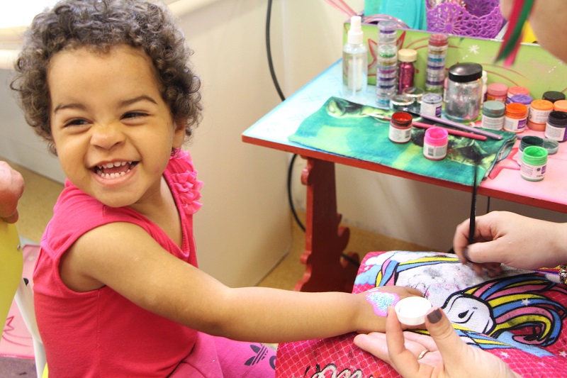 A atividade é alusiva aos Dias das Crianças, data comemorada neste mês. Foram distribuídos jogos, bolas, bonecas e carrinhos, proporcionando momentos de descontração e alegria às crianças. Além disso, no ambulatório de Onco-hematologia, os pequenos receberam pinturas faciais e desenhos em seus braços.