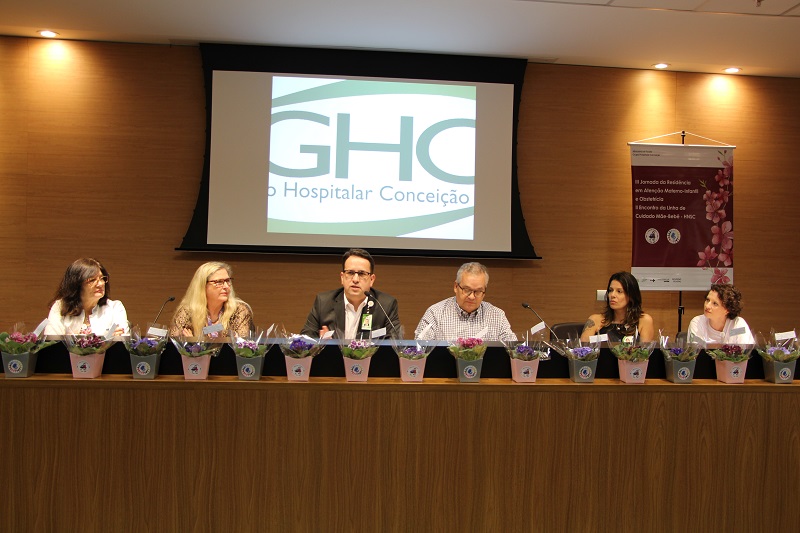 Na mesa de abertura, o diretor administrativo e financeiro do GHC, José Ricardo Agliardi Silveira, representou a diretoria. Também estave presente Dinara Dornfeld, supervisora do Programa de Residência em Atenção Materno-Infantil e Obstetrícia, que foi criado em 2013 com o objetivo de manter o cuidado materno-infantil integral e humanizado.