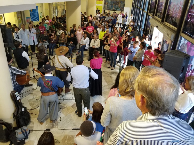 O Hospital Fêmina promoveu, na manhã desta quarta-feira, 31 de outubro, um show com o cantor nativista Elton Saldanha. A atividade foi realizada em celebração ao encerramento das atividades do projeto Bombardeio de Fios, durante o Outubro Rosa.