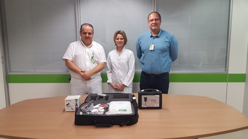 Estiveram presentes no ato de entrega o gerente da GEP, Geraldo Jotz, o coordenador-geral da GEP, Abrahão Assein Arus Neto, e a odontóloga Ana Paula Braun, representando o Centro de Especialidades Odontológicas do HNSC.
