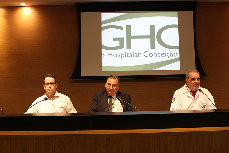 Na mesa de abertura, estavam presentes, o diretor técnico do GHC, Mauro Sparta, o diretor administrativo e financeiro do Grupo, José Ricardo Agliardi Silveira, e o assistente técnico do Serviço de Dor e Cuidados Paliativos do Hospital Nossa Senhora da Conceição (HNSC), Newton Barros.