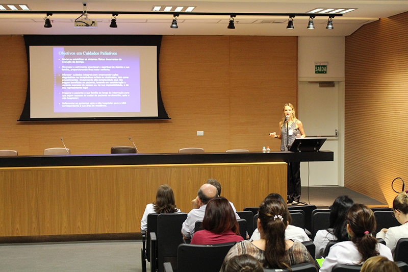 A jornada científica do Serviço de Dor e Cuidados Paliativos contou, pela manhã, com uma série de atividades envolvendo o tema. No primeiro momento, coordenado pela profissional do HNSC Martha Zuardi, foi realizada a primeira miniconferência sobre “Contribuição do Cuidado Paliativo para a Qualificação da Assistência”, apresentada pelo médico Newton Barros. Em seguida, “Desafios na Transição de Cuidados”, foi tema da miniconferência realizada pelo médico Ricardo Pedrini Cruz, do HNSC.