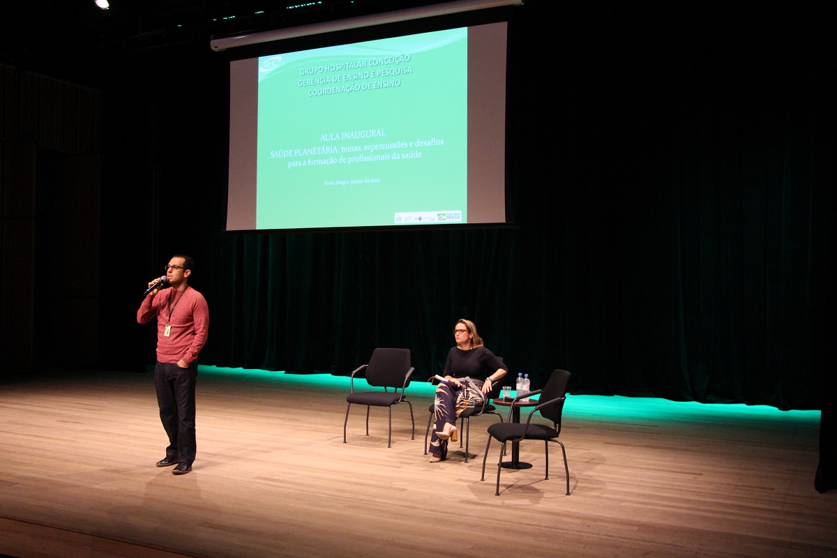 A solenidade teve abertura do técnico em educação e coordenador de Ensino da GEP, Rodrigo de Oliveira Azevedo, e da enfermeira e assistente de coordenação de Ensino, Márcia Adriana Poll, que deram as boas-vindas ao público e apontaram a importância do encontro. “O evento é importante porque reúne em um mesmo espaço pessoas de diferentes níveis de formação para pensarem estratégias comuns para superação e cuidados da saúde humana”, afirmou Azevedo. Em um segundo momento, o docente da Universidade de Caxias do Sul Enrique Falceto Barros ministrou uma aula palestra sobre saúde planetária.