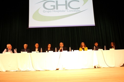 Presentes na mesa de abertura, estavam o diretor técnico do GHC, Francisco Zancan Paz, a reitora da UFCSPA, Lucia Campos Pellanda, o representante da Rede Bioética Unesco Volnei Garrafa, a coordenadora do Programa Regional de Bioética Unesco, Suzana Maria Vidal, o presidente da Sociedade Brasileira de Bioética, Dirceu Greco, o presidente do Conselho Regional de Enfermagem, Daniel Menezes de Souza, a coordenadora do Observatório de Direitos do Paciente, Aline Albuquerque, e o presidente do Comitê de Bioética do Grupo Hospitalar Conceição e coordenador do evento, Rogério Amoretti.