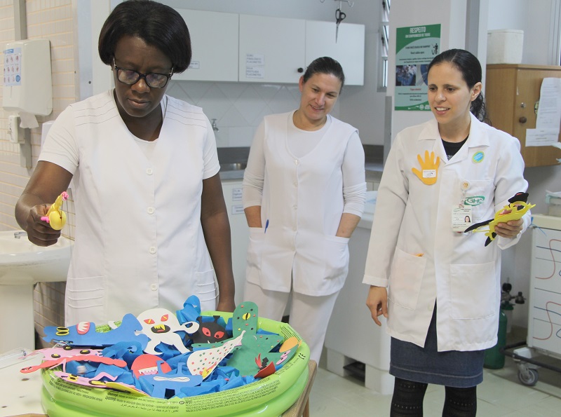 Além das entregas dos certificados, o Controle de Infecção do HNSC também promoveu durante esta semana uma série de atividades na instituição relacionadas ao tema. Na tarde da última terça-feira, dia 14, o serviço percorreu diversas áreas do hospital para promover a importância da higienização de mãos. As enfermeiras Rosaura Bordinhão e Milene Vargas, a técnica de enfermagem Andréia Scalcon e a acadêmica de enfermagem Laís Brum Albuquerque realizaram atividades lúdicas com profissionais das equipes assistenciais do hospital e entregaram fôlderes informativos de orientação para usuários da instituição.