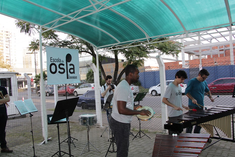 A UPA Moacyr Scliar recebeu o projeto Ospa na Comunidade na tarde dessa quinta-feira, dia 11 de julho. A atividade reuniu 11 alunos de percussão da Escola de Música da Ospa, que tocaram músicas populares para o público presente no pátio interno da unidade.