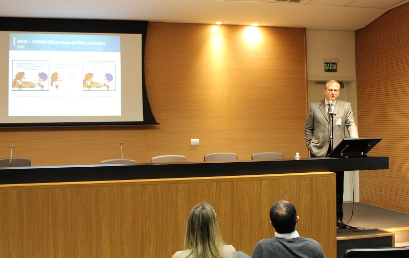 Ocorreu na manhã desta sexta-feira, 19 de julho, no Auditório Jahyr Boeira de Almeida, no Centro Administrativo GHC, o curso presencial de Ética e Conduta no Grupo Hospitalar Conceição, promovido pela Comissão de Ética e Conduta do GHC. O objetivo da atividade é disseminar a cultura ética na instituição e capacitar os funcionários sobre noções conceituais em ética, comportamentos esperados e vedados do Código de Ética e Conduta do GHC, Comissão de Ética e Conduta do GHC e seus normativos, Comissão de Ética Pública, rito processual da comissão de Ética e conduta, canais de denúncias e sanções.