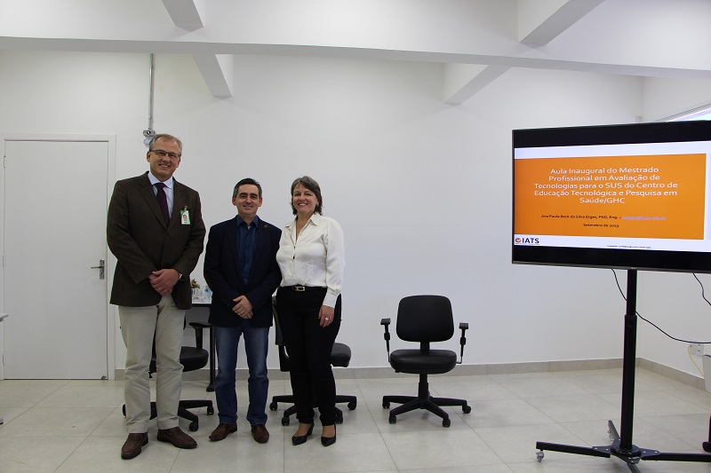 No dia 26 de setembro, foi realizada na Escola GHC a aula inaugural da quarta turma do Mestrado Profissional de Produção e Avaliação de Tecnologias para o SUS do Grupo Hospitalar Conceição. A abertura foi realizada pela coordenadora do mestrado, Luciane Kopittke, pelo diretor-superintendente do GHc, André Cecchini, e pelo Gerente de Ensino e Pesquisa do GHC, Paulo Worm. A aula sobre Avaliação de Tecnologias da Saúde foi proferida pela doutora Ana Paula Beck da Silva Etges, professora da Escola Politécnica da PUCRS e pós-doutoranda do Instituto de Avaliação de Tecnologias em Saúde em Projetos de Microcusteio.
