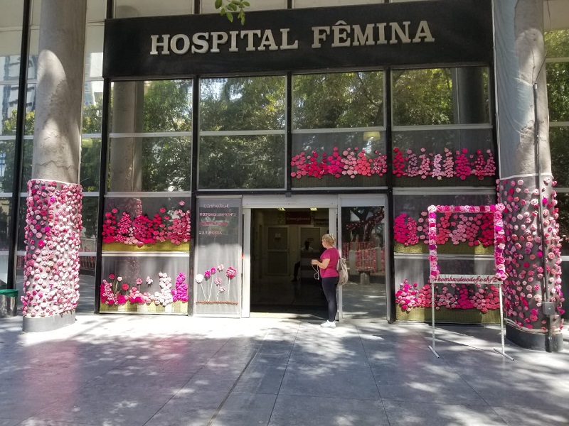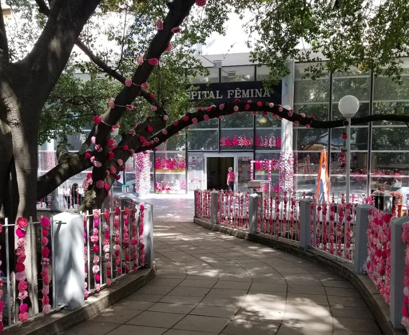 A fachada e a área externa do Hospital Fêmina receberam decorações para promover o Outubro Rosa, mês de conscientização e apoio às pessoas com câncer de mama. Funcionários e voluntários começaram neste domingo, 29 de setembro, a ornamentar a instituição com flores de crochê para a causa. Cerca de 15 mil flores na cor rosa foram confeccionadas de forma voluntária para enfeitar o hospital, dedicado à saúde da mulher.