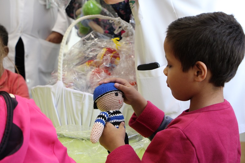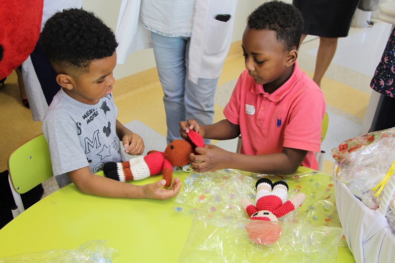Em seguida, os pacientes receberam a visita da Dona Joana, mascote do HCC, dando início ao projeto Bonecas da Turma da Dona Joana. "São bonecos e bonecas que as crianças da Oncologia passam a ganhar. Um mascote que pode ser o companheiro deles no hospital durante o tratamento, que podem levar pra casa e trazer quando internam", conta a técnica em educação do serviço Mayara Bittencourt.