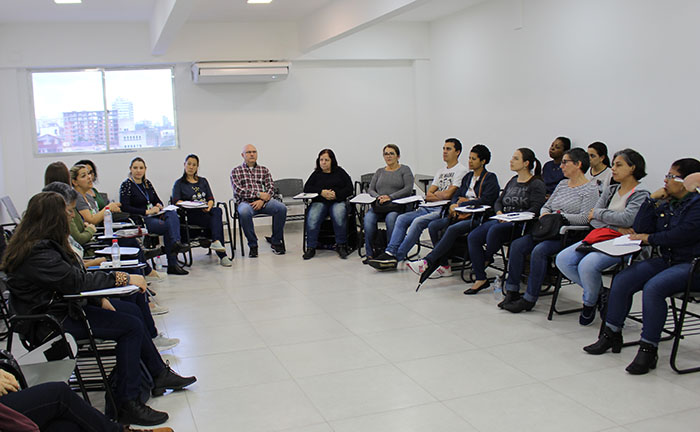 Foi realizado, nesta quarta-feira, 16 de outubro, na Escola do Grupo Hospitalar Conceição (GHC), o 1° Curso de Extensão em Gastronomia da Origem à Prática. A atividade é uma parceria com a Unisinos e conta com aulas teóricas e práticas, que serão realizadas no laboratório de culinária da Universidade. O curso terá seis encontros com duração de 4h, totalizando 24h, com término previsto em 20 de novembro. A atividade possui um total de 20 alunos, entre eles nutricionistas, atendentes de nutrição, técnicos em nutrição e cozinheiros dos serviços de Nutrição do GHC.