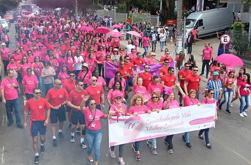 Em clima festivo e de integração, foi realizada na manhã desta sexta-feira, 25 de outubro, a 11ª Caminhada Mulher Consciente do Hospital Conceição (HNSC). Promovida pelo Setor de Mastologia do HNSC e pelas voluntárias do Grupo da Mama Conceição, a atividade busca conscientizar para o diagnóstico precoce e prevenção do câncer de mama. Com camisetas e adereços cor-de-rosa, o público teve concentração em frente ao hospital, onde assistiu ao show artístico do humorista Guri de Uruguaiana, do MC Jean Paul, do cantor Cris Fagundes e do coral Um Novo Horizonte do Centro de Convivência e Profissionalização (Ceconp/Fase). O momento proporcionou a animação de todos. Como tradicionalmente já ocorre, os bombeiros também participaram, incentivando as mulheres.