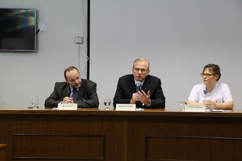 A mesa de abertura contou com a presença do superintendente do Grupo Hospitalar Conceição, André Cecchini, do gerente de Unidades de Internação do Hospital Cristo Redentor, Márcio Pasa, e da representante da Comissão Organizadora do evento Anelise Castelão