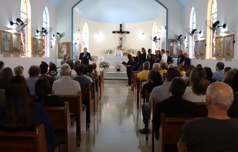 Na última sexta-feira, 6 de dezembro, foi realizada no Espaço Inter-Religioso do Hospital Conceição, uma missa em homenagem à Nossa Senhora da Conceição e ao aniversário da instituição, que comemora 59 anos em 2019. Comandada pelo Padre Jorge, ela foi direcionada aos funcionários do GHC, usuários e público em geral, contando com a presença dos diretores do Grupo Hospitalar Conceição, André Cecchini, Francisco Paz e Cláudio Oliveira, da gerente de Administração do Hospital Conceição, Marina Machado Dias, representantes do Lions Club Barão do Cahy e dos familiares de Jahyr Boeira de Almeida, fundador da instituição.
