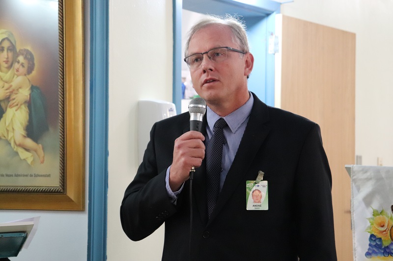 A cerimônia iniciou com a manifestação do superintendente do GHC, André Cecchini. Ele falou sobre a importância das ações realizadas por Jahyr Boeira de Almeida de promoção da saúde e do bem-estar da população, além de prestar homenagem para os familiares presentes no local.
