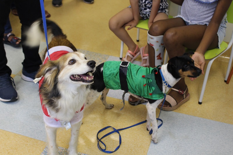 Foi realizado na manhã dessa quarta-feira, 11 de dezembro, no Ambulatório de Hematologia e Oncologia do Hospital Criança Conceição (HCC), uma sessão de pet-terapia. Marcado por brincadeiras e interação entre os pacientes e os cachorros Buzz e Billy, o projeto promove encontros mensais.