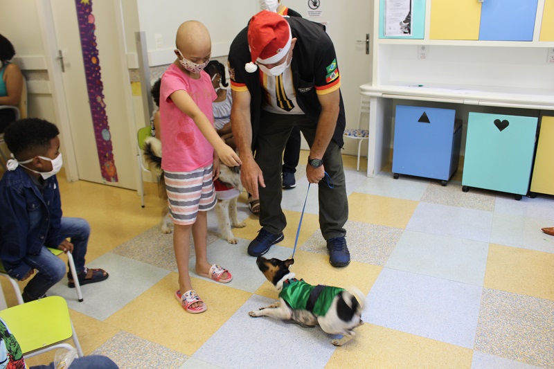 Os animais foram acompanhados pelo adestrador Jone Cardoso, que comentou sobre a importância da relação das crianças com os cachorros, destacando que o contato contribui de maneira positiva no tratamento dos pequenos. "Estudos já comprovaram a importância da pet-terapia para o tratamento das crianças. A autoestima do paciente se eleva e isso dá uma resposta positiva no tratamento, melhorando também o emocional desta criança. Os pequenos relatam que se esquecem que estão no hospital", completou.