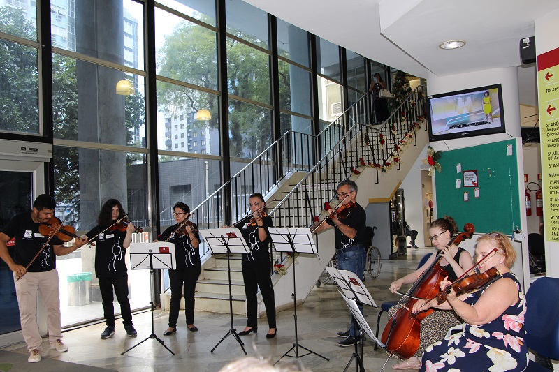 Foi realizada, na tarde da última quinta-feira, 12 de dezembro, no saguão do Hospital Fêmina (HF), a apresentação de corais em alusão ao Natal. A atividade contou com a participação da Escola de Música Sons Del’Arco, do Coral do Departamento Municipal de Água e Esgotos de Porto Alegre (Dmae) e do Coral da Igreja São Mateus.