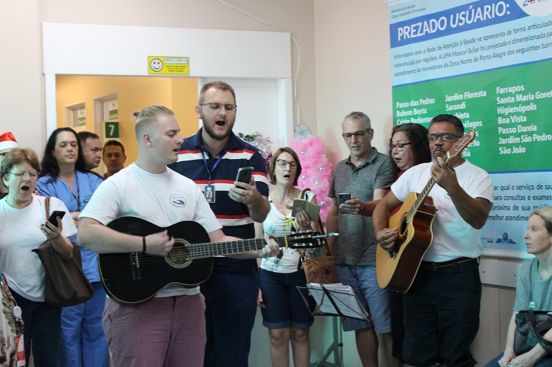 Foi realizada, na tarde da última terça-feira, 17 de dezembro, o Natal na UPA Moacyr Scliar. A atividade contou com a participação de médicos, enfermeiros e técnicos em enfermagem junto com o Coral São Lucas para entoar cânticos natalinos para pacientes e acompanhantes no saguão da Unidade de Pronto Atendimento. A ação teve como objetivo dividir a alegria no ambiente.