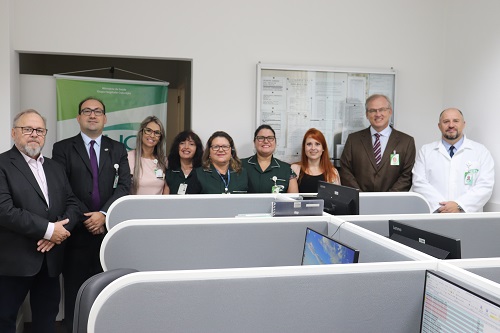 Nesta terça-feira, 11 de fevereiro, foi entregue a nova área de telefonia do Hospital Conceição (HNSC). Estiveram presentes o diretor-presidente do GHC, André Cecchini, o diretor técnico do GHC, Francisco Paz, o diretor administrativo e financeiro do GHC, Cláudio Oliveira, o gerente de Unidades de Internação do HNSC, Rafael Ribeiro, e a gerente de Administração do HNSC, Marina Machado Dias.