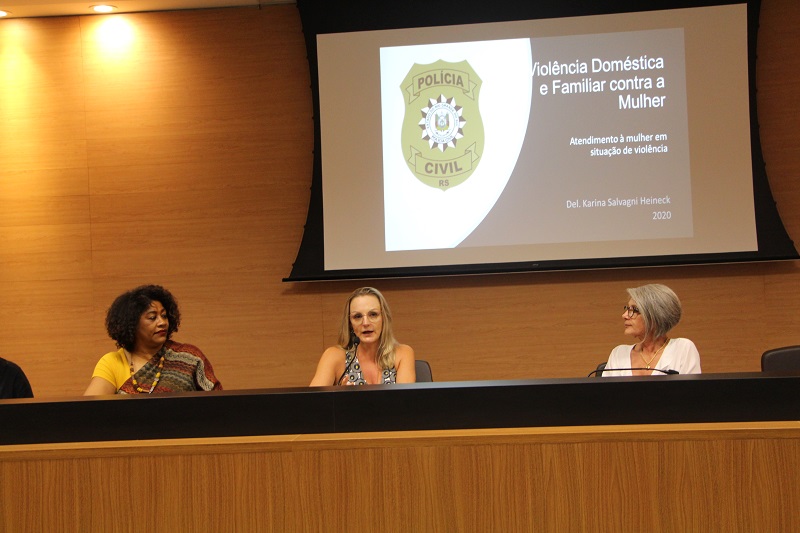 A delegada Karina Heineck apresentou dados referentes ao feminicídio no Rio Grande do Sul, os quais apontam que dos 97 casos, ocorridos em 2019, 71% aconteceram nas residências das vítimas e apenas quatro tinham medida protetiva. Karina também comentou a execução da Lei Maria da Penha no Brasil. “É uma das melhores leis, mas a rede de atendimento que é prevista tem que funcionar”. Ao fim do seminário, a delegada salientou que no Estado há 23 delegacias exclusivas para o atendimento às mulheres e que nelas se encontram profissionais bem instruídos para atender as vítimas e as denúncias.