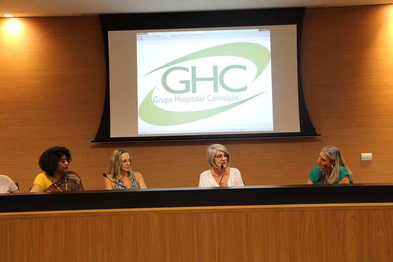 A coordenadora da Participação Cidadã, Vera Beatriz Cruz, iniciou sua fala a partir de um vídeo produzido pelos alunos da Escola GHC, no qual foi instigando o público a pensar como é possível mudar uma realidade onde mulheres estão morrendo pelo fato de serem mulheres. Ela também ressaltou a importância dos funcionários nesta causa. “Somos profissionais de saúde em uma instituição com 73% de mulheres. Somos mulheres cuidando de mulheres”, lembrou ela.