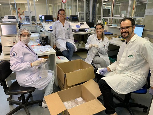 Outra ação do Laboratório envolve a colaboração dos funcionários na montagem de kits de coleta para o exame PCR. Os kits com SWAB são disponibilizados pela Secretaria Municipal da Saúde, entretanto, para garantir a continuidade das coletas neste período da pandemia, um grupo multidisciplinar da equipe do Laboratório montou os kits durante sua rotina de trabalho.