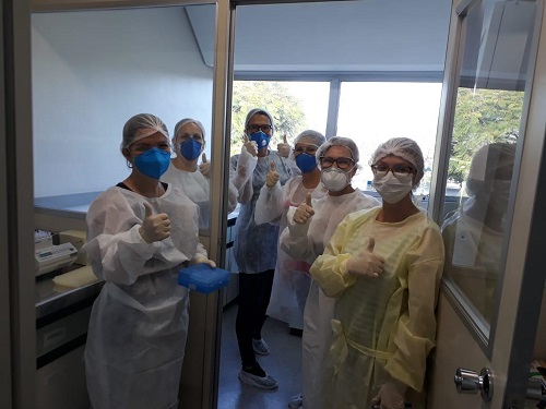 Dois bioquímicos, um auxiliar de laboratório e uma biomédica, esta do Hospital Fêmina, estão ajudando o Lacen desde o final de março, inclusive aos finais de semana, tendo realizado mais de 3500 testes.