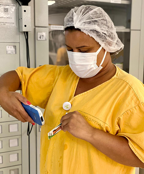 Para a técnica de enfermagem da unidade 3ºI1 Karen Gomes da Silva, a iniciativa, além de facilitar o acesso ao registro dos sinais vitais, aumenta a segurança do paciente, bem como dos profissionais, pois diminui possíveis erros na administração de medicamentos. A medida também é saudada pela técnica de enfermagem Fabiane Figueiredo Ribas, ao destacar sua praticidade. Ela lembra que cada profissional tem seu aparelho para usar no turno de trabalho, acessado pelo login do funcionário, que neste caso é o crachá. “O aparelho está em fase de teste. Nós vamos nos adaptando a ele e ele a nós”, conta Fabiane.