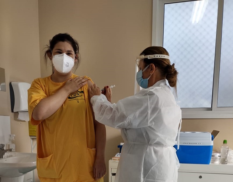 A aplicação das vacinas está sendo feita pela Saúde do Trabalhador.