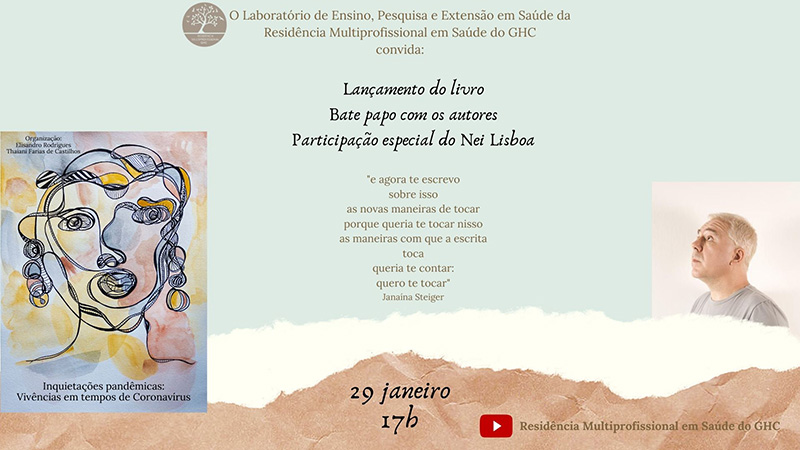 O lançamento do livro será feito de forma virtual, por meio do canal "Residência Multiprofissional em Saúde do GHC" no YouTube aberto a todos os interessados, no dia 29 de janeiro (sexta-feira), às 17h. Além do bate papo com alguns autores do livro, o evento contará, ainda, com um pocket show do Nei Lisboa, artista gaúcho com mais de onze discos lançados ao longo de mais de três décadas, além de dois livros: uma coletânea de crônicas e um romance, este editado no Brasil e na França.