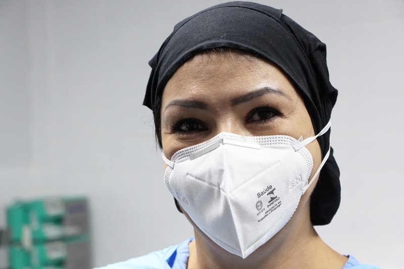 Regina tem 47 anos e trabalha na Emergência do Hospital Conceição (HNSC) há quase quatro anos. Mesmo com o momento difícil vivido no hospital devido ao crescimento do número de casos de coronavírus registrado nas últimas semanas, ela continua uma pessoa sorridente e animada. Com a maquiagem destacando o "sorriso nos olhos", procura passar força para os pacientes e colegas de profissão. "Por mais que isso aqui seja negativo, eu procuro pensar que a gente vai vencer esta fase. Eu penso que estou aqui porque essas pessoas precisam de mim e se eu não procurar um gás, uma força lá do fundo, como que eu vou passar pra eles algo mais forte. Eu tenho que ter uma estrutura", afirma Regina.