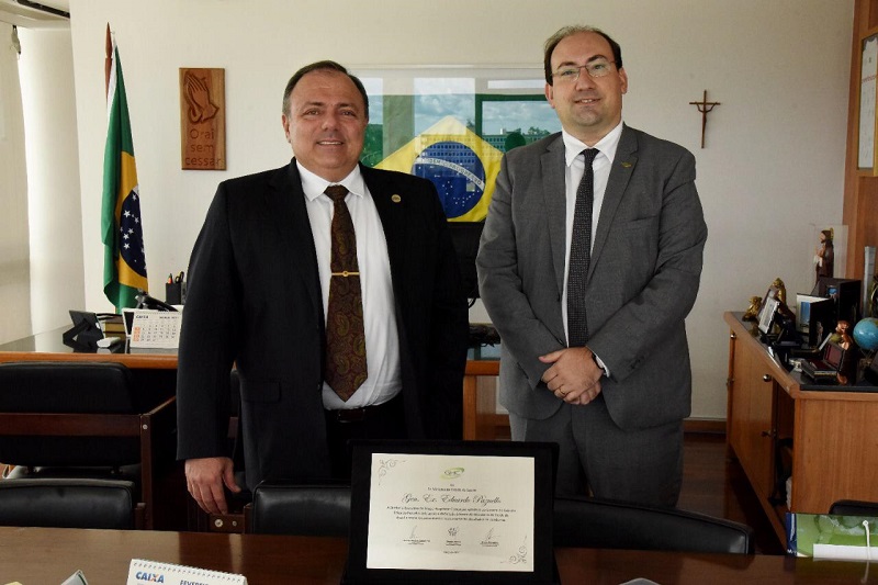 A Diretoria do Grupo Hospitalar Conceição demonstrou seu reconhecimento ao ex-ministro da Saúde Eduardo Pazuello, entregando-lhe uma placa em agradecimento ao apoio e à dedicação à frente do ministério neste momento desafiador da pandemia. A placa de homenagem foi entregue pelo diretor-presidente Cláudio Oliveira, em visita realizada esta semana ao MS.