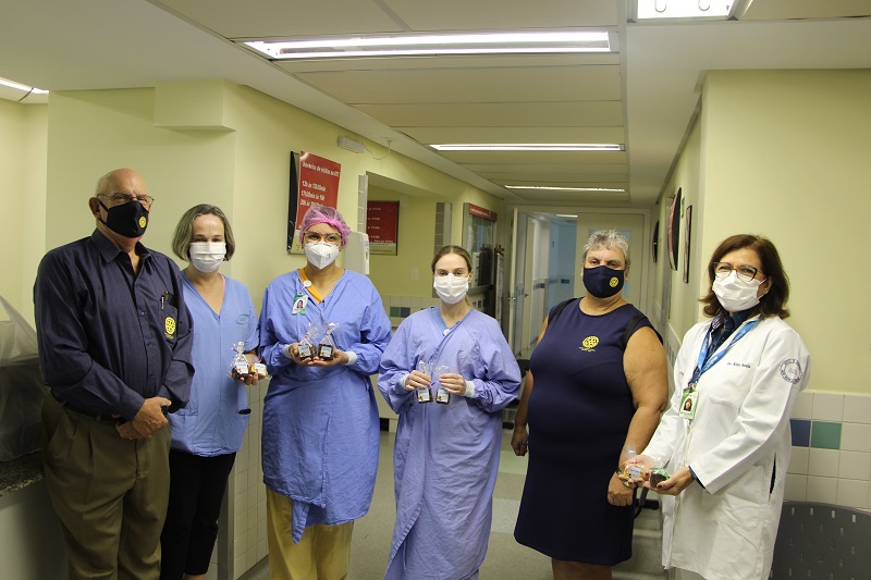 A entrega, que foi realizada pelo vice-presidente do Rotary Club Porto Alegre-Leste, Antônio Carlos Jardim, e pela responsável por serviços da comunidade, Marilice Claus, foi acompanhada pelo gerente de Apoio do Hospital Conceição, Élcio Carvalho, pelo responsável pelo Voluntariado do GHC, Sérgio Selister, e pela médica Kátia Souto.
